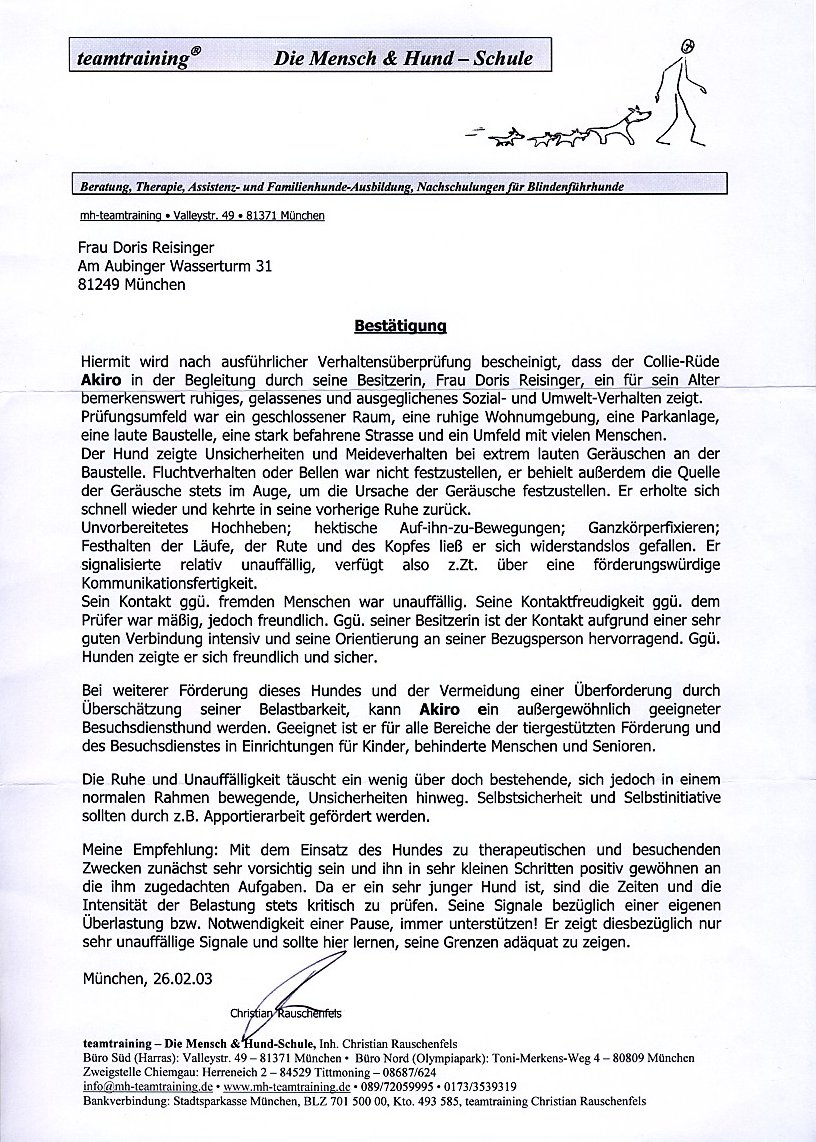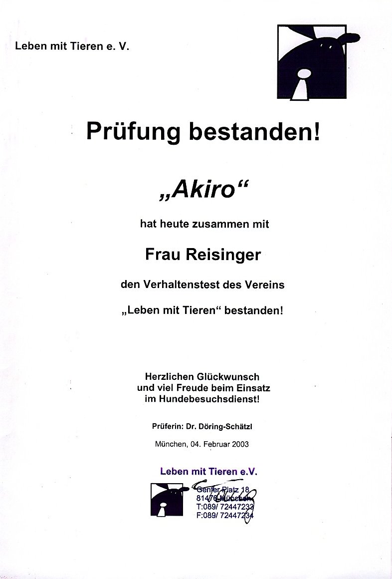 Mein Therapiehund Akiro und ich. Ich habe ihn selbst ausgebildet. Er wurde an der Ludwig Maximilian Universität in München von Frau Dr. Döring -Schätzl geprüft.